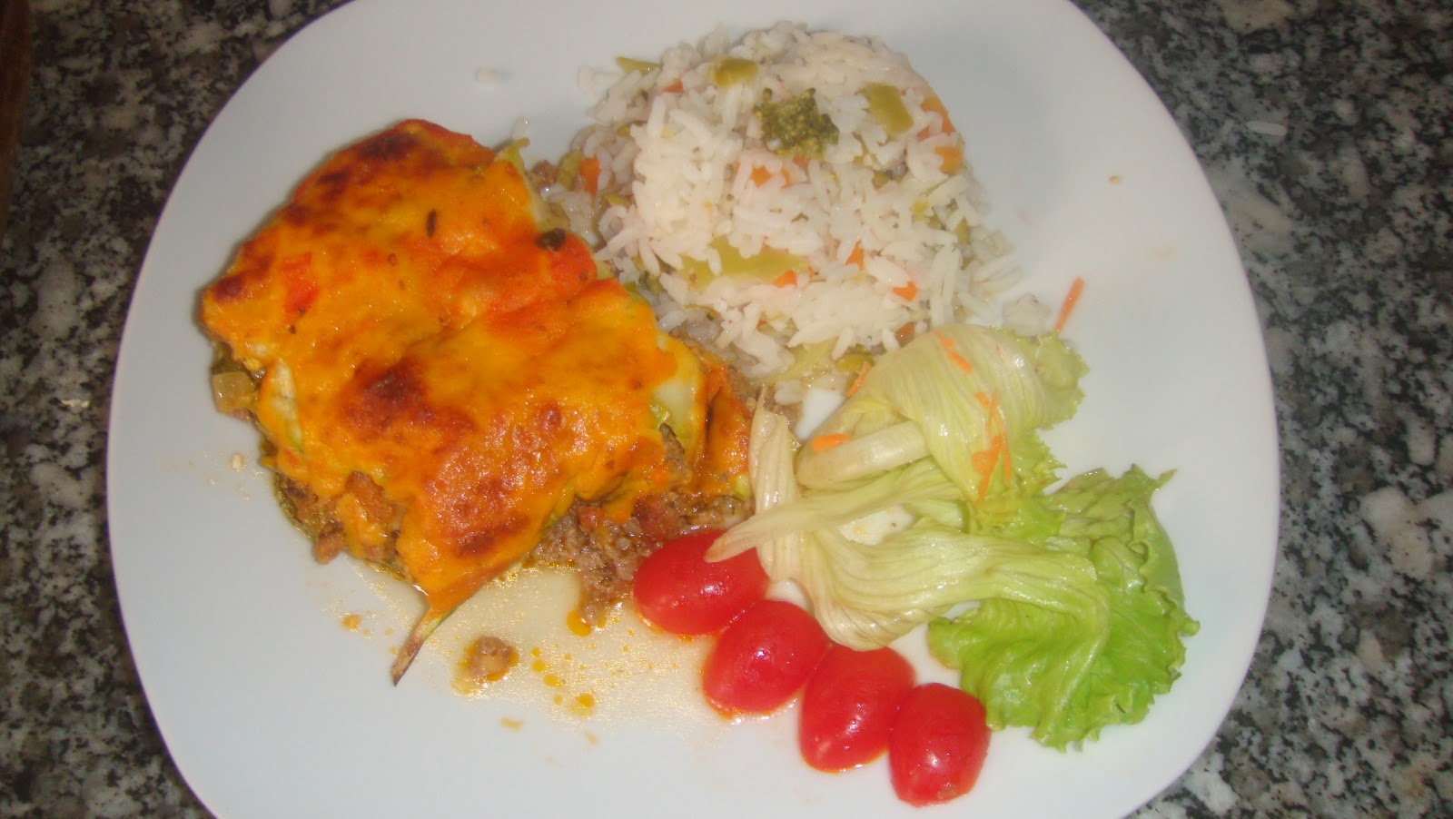 Eu tenho pensando ainda mais em fugir do convencional quando o assunto é comida. Inovar, fugir do tradicional, porque não dá pra comer arroz com feijão e SÓ todos os dias. Mas tem que ter criatividade e um pote cheio de amor. Tenho me inspirado muito na Thaís Ventura do As Delícias do Dudu. Semana passada ela postou uma receita de lasanha de abobrinha, e hoje resolvi fazer quase a mesma receita, só que coloquei carne moída "vitaminada", é que eu nunca faço carne moída só com os temperos normais, sempre ralo uns dois vegetais, hoje foi mandioquinha ralada e vinagreira picadinha. A receita é simples, simples.